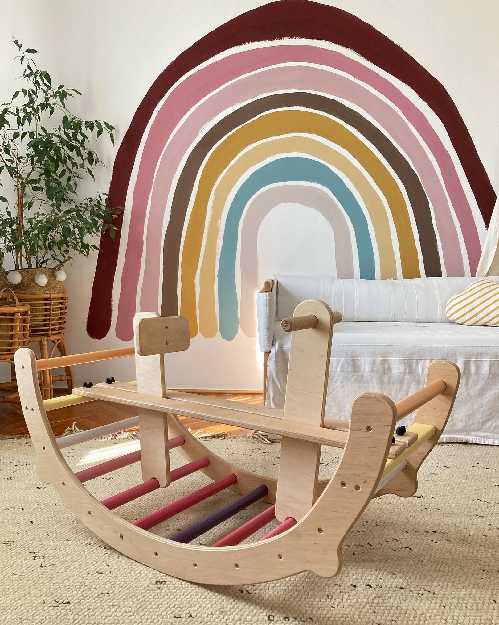 Emellett a csúszda segítségével összeköthető a szivárványhintával és a nagy mászókával is.